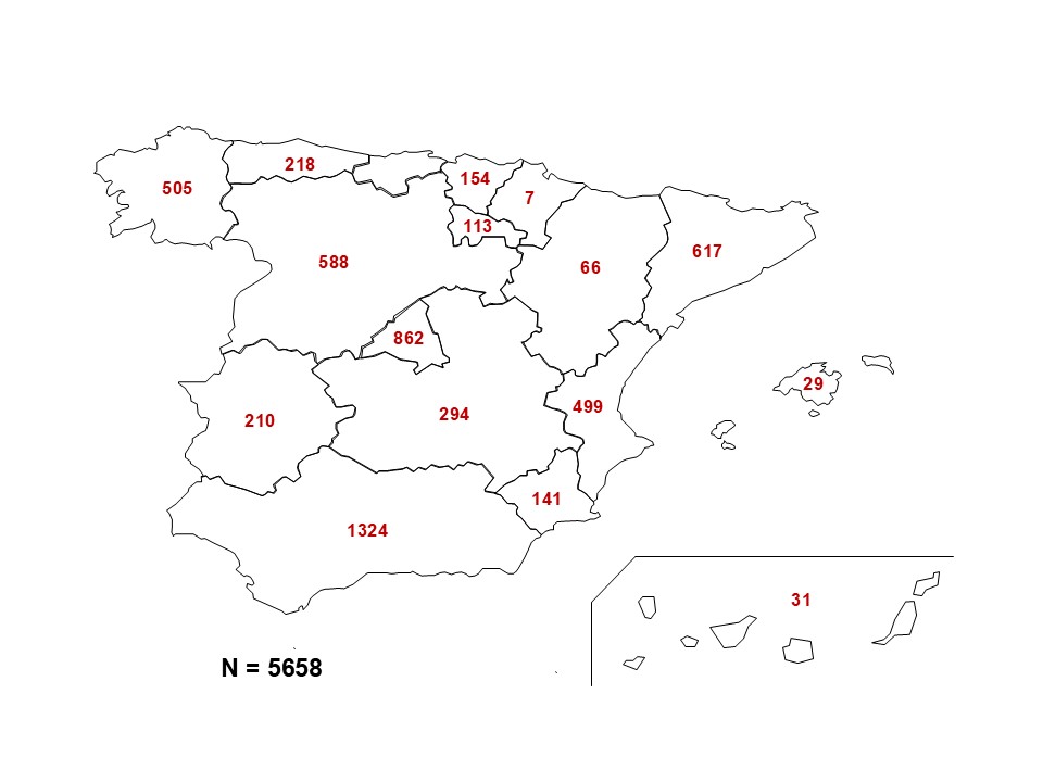 El número de casos de acuerdo a la comunidad autónoma donde residen se muestra en la siguiente figura.